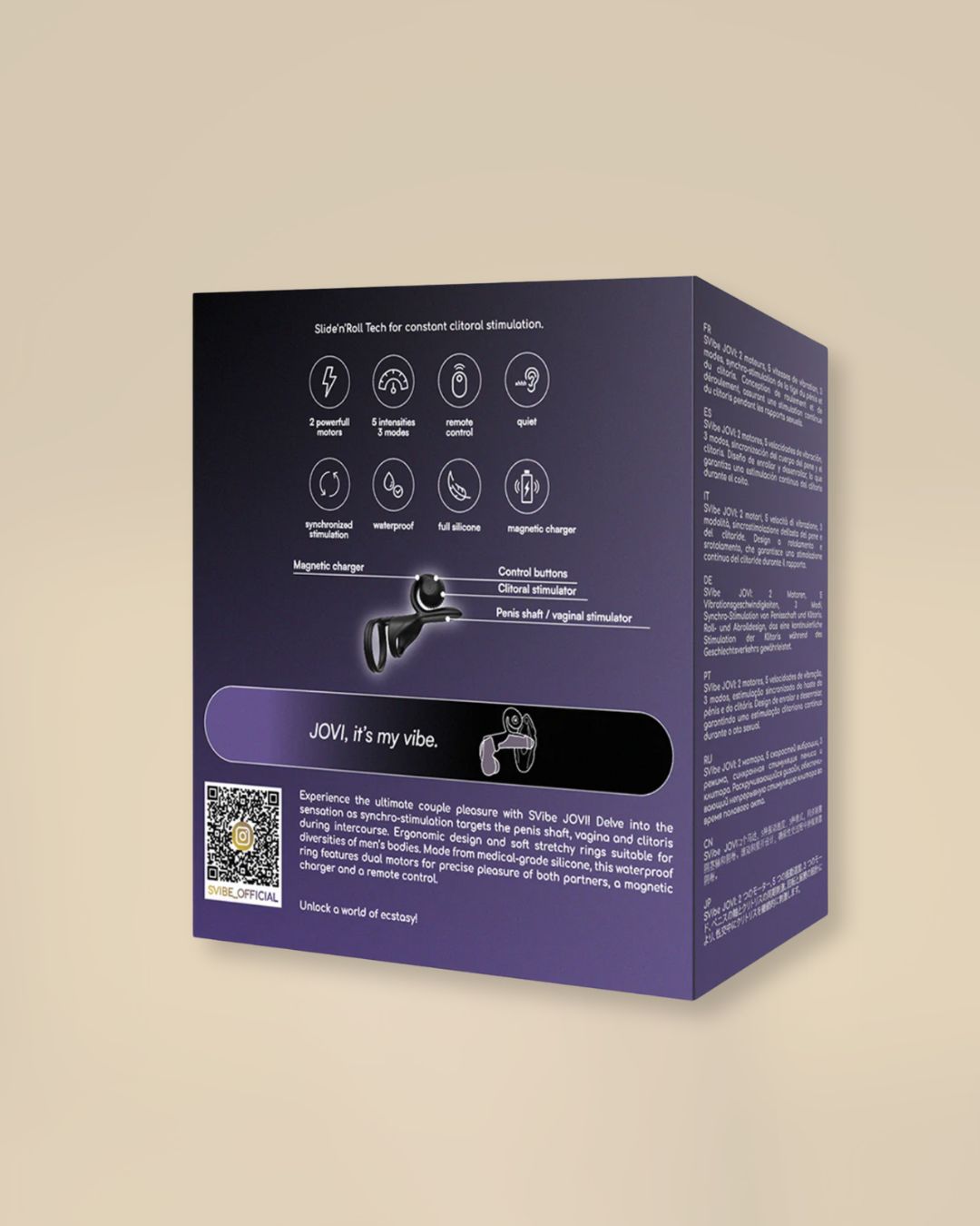 Designed for passionate couples, the SVibe JOVI Couples Ring ensures an enhanced, synchronized experience, turning ordinary moments into unforgettable pleasure.
